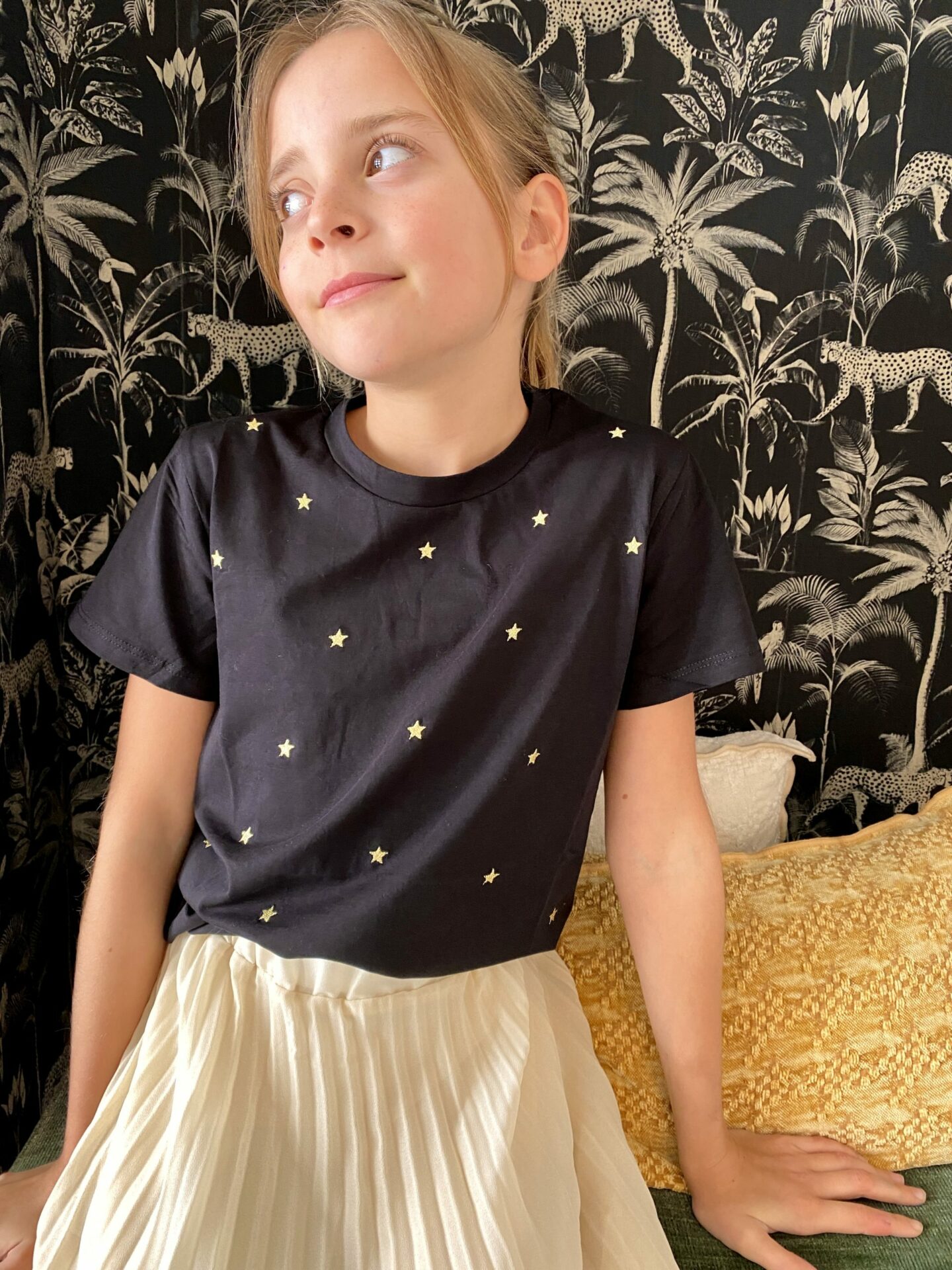 29,00€Tee Shirt Fille noir étoiles brodées doré
