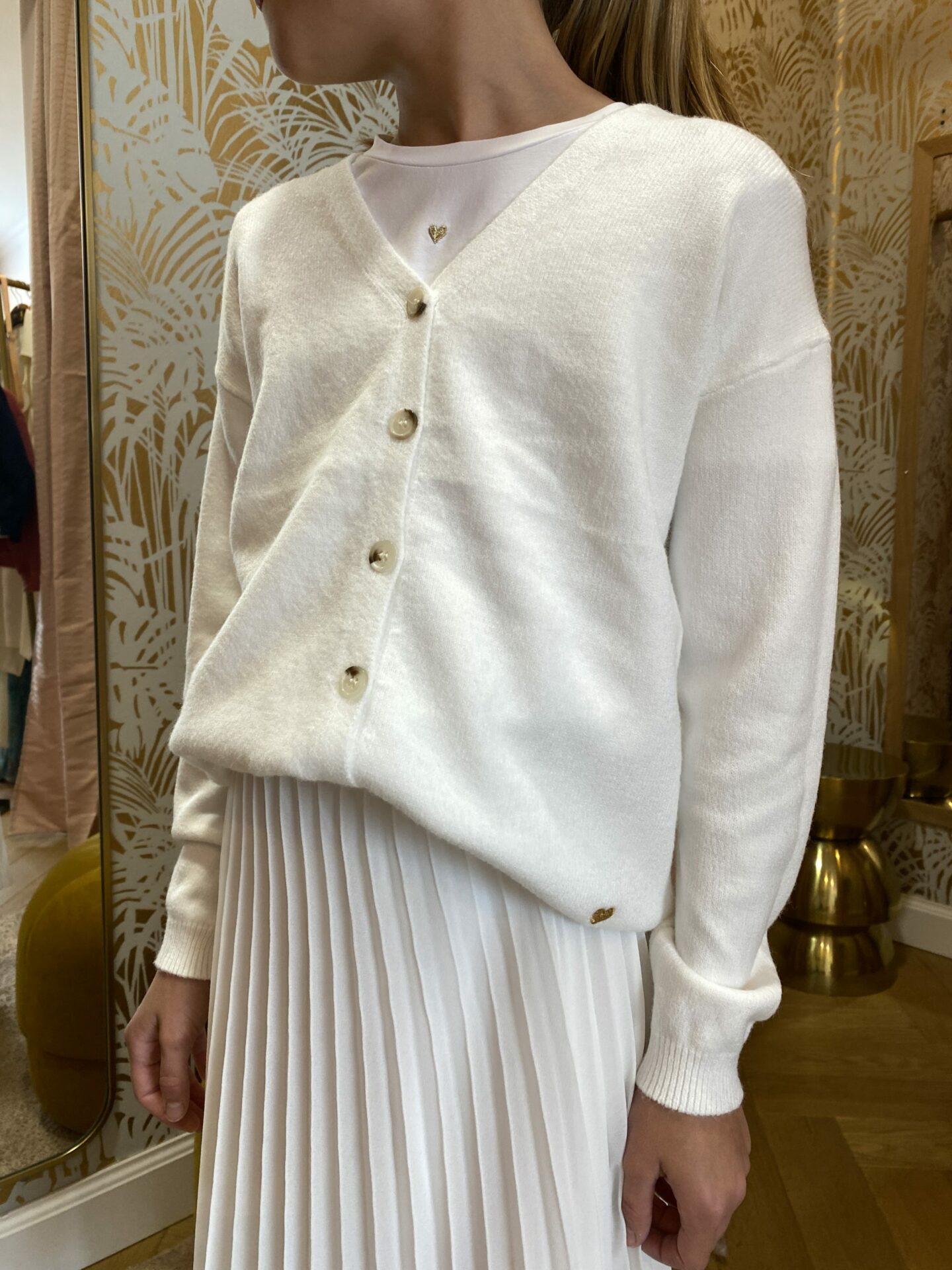 19,00€Gilet blanc Fille coeur brodé doré