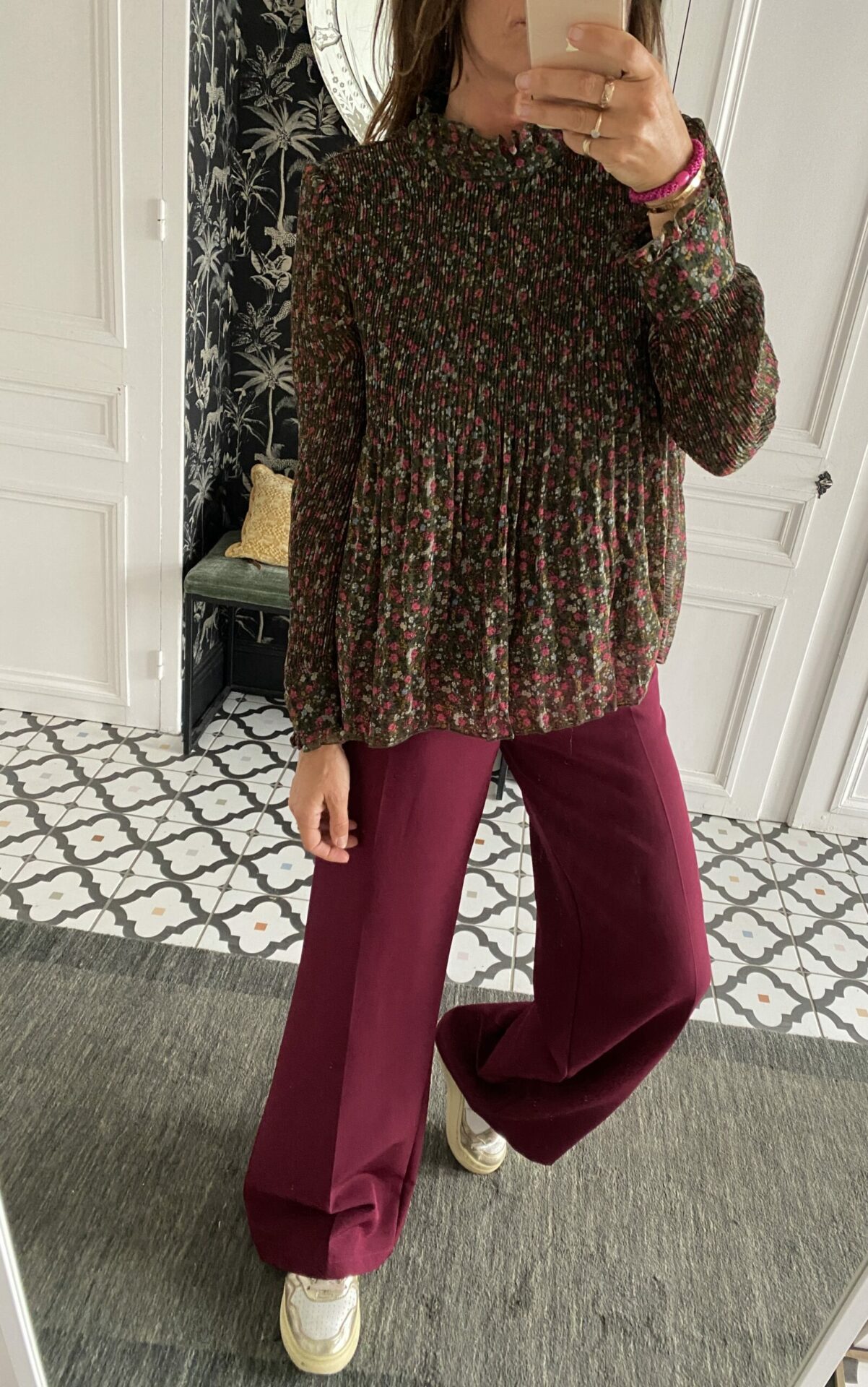 Blouse plissée peites fleurs kaki