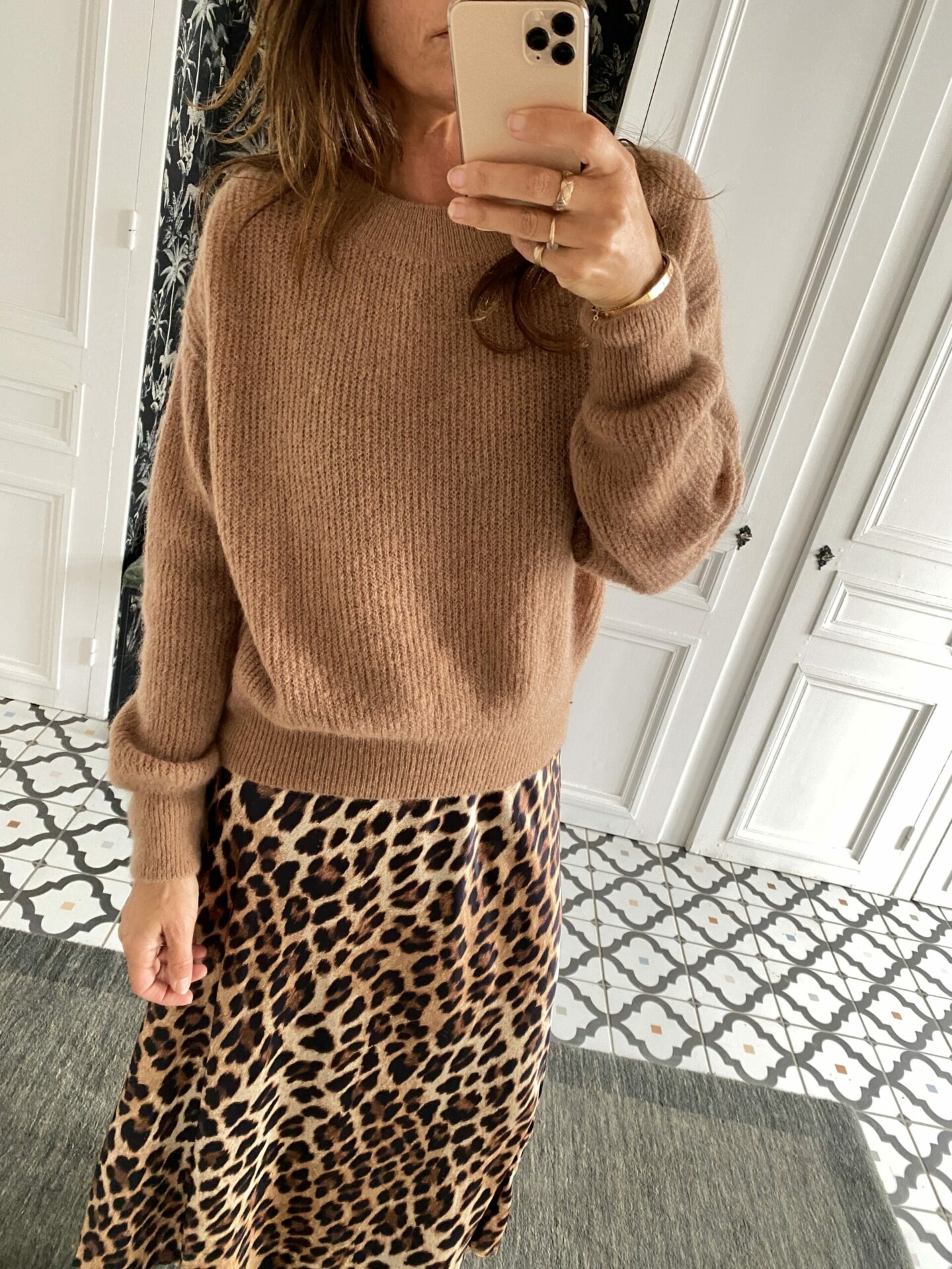 Jupe satinée léopard camel