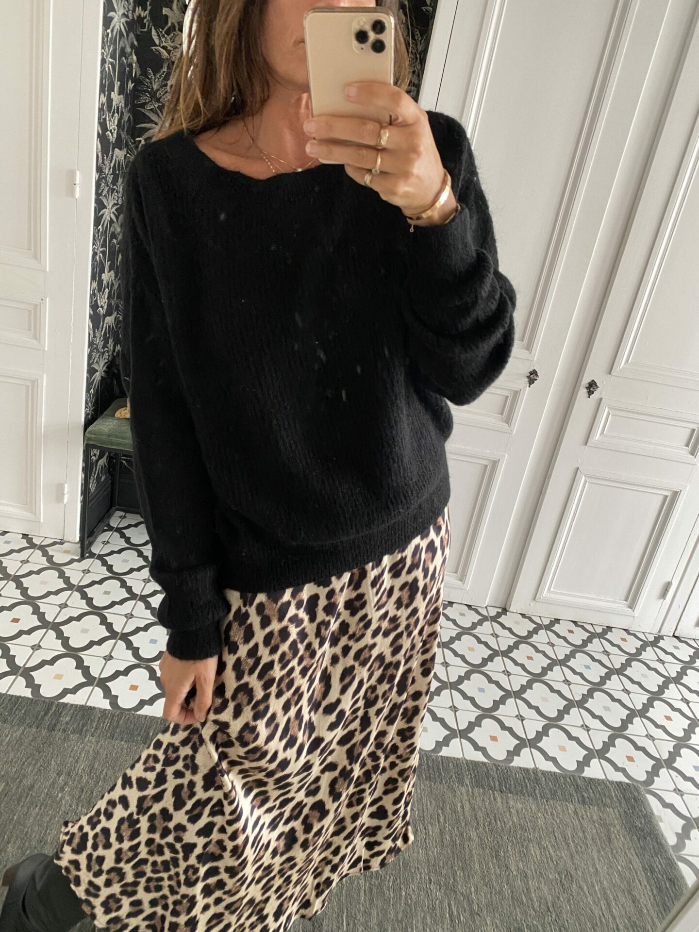 Jupe satinée léopard beige