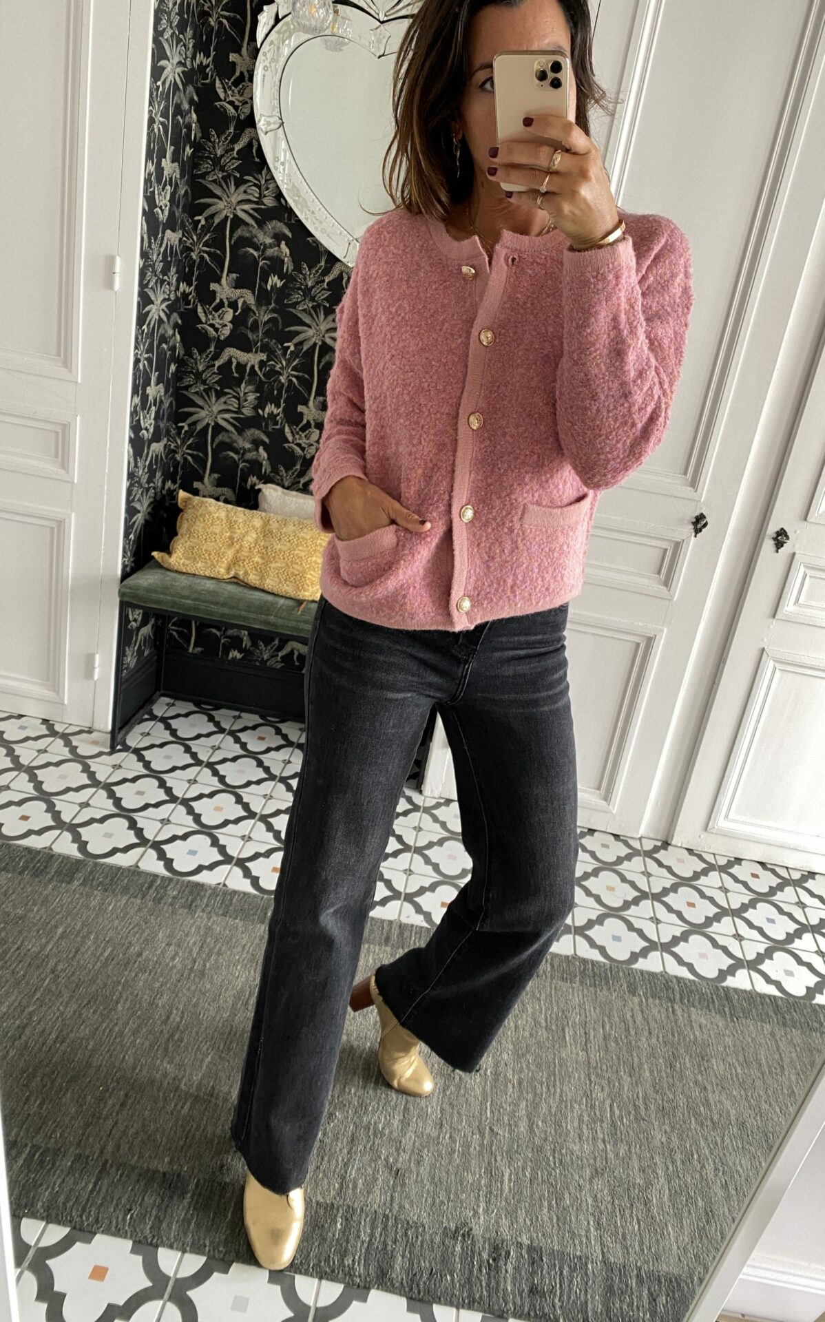 44,00€Gilet rose chiné boutons dorés
