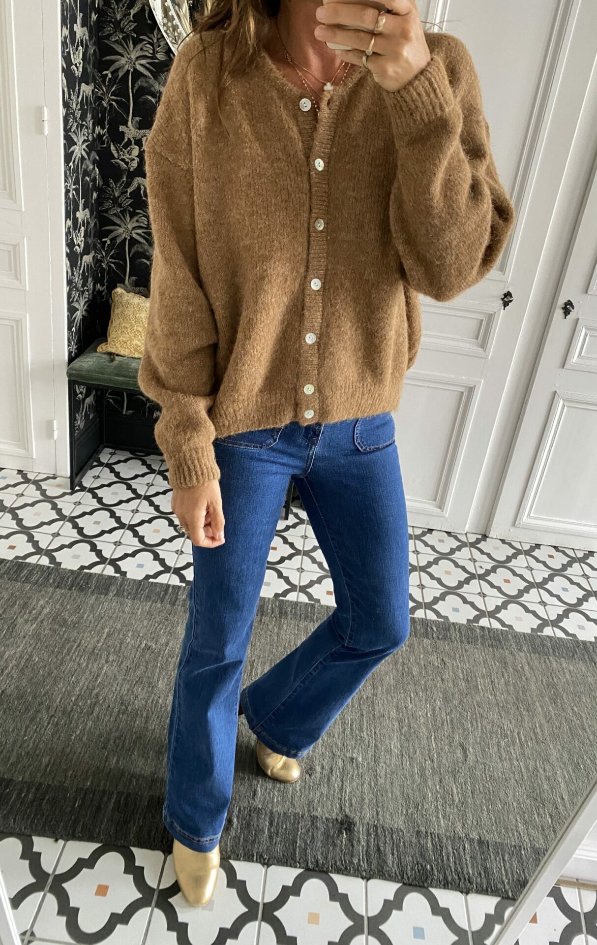49,00€Gilet col rond boutonné camel