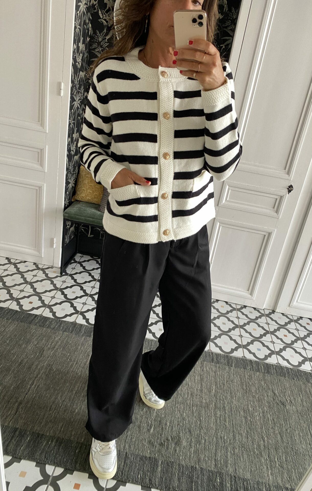 30,00€Gilet rayé blanc et noir boutons marins dorés