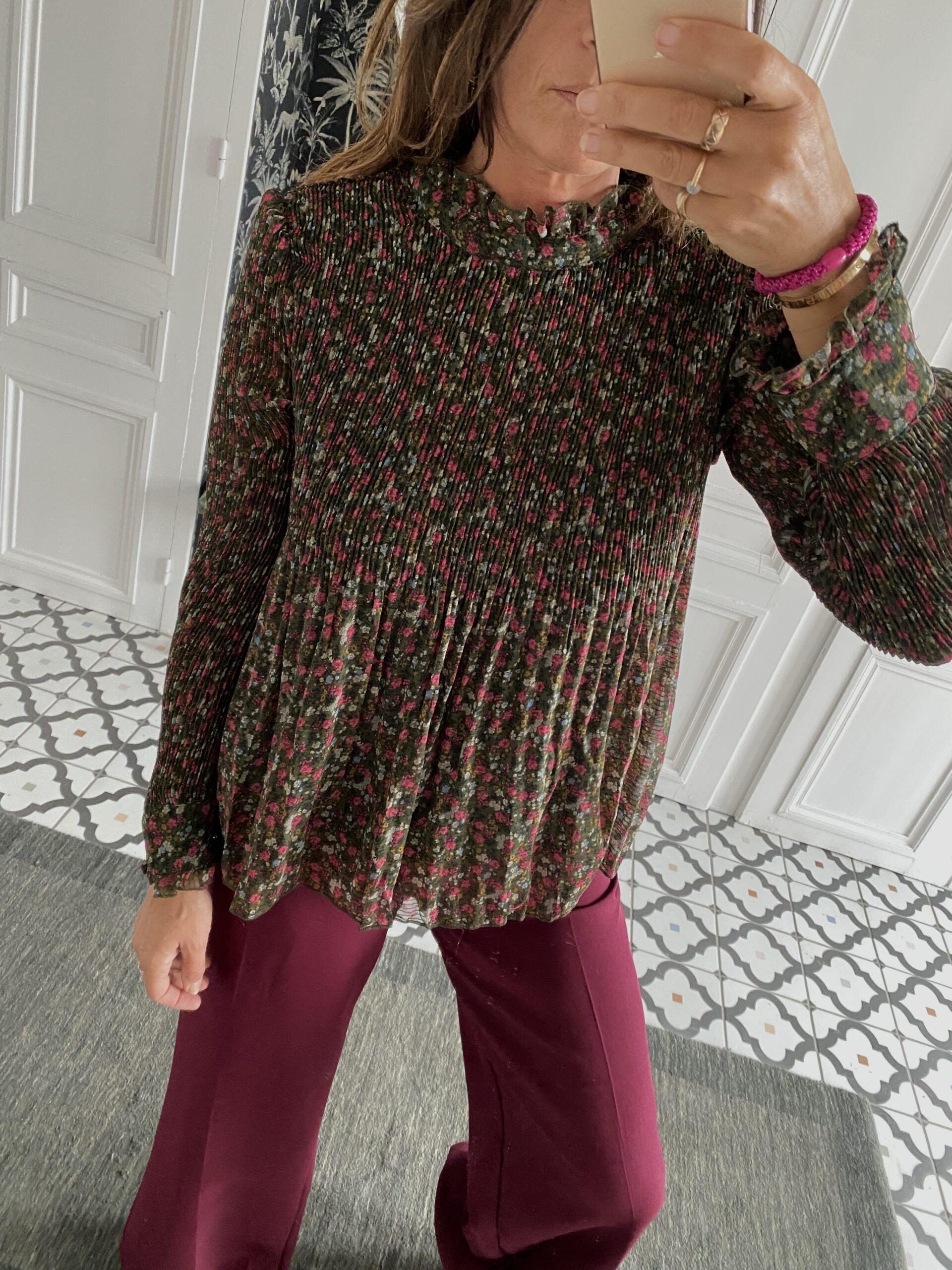 Blouse plissée peites fleurs kaki