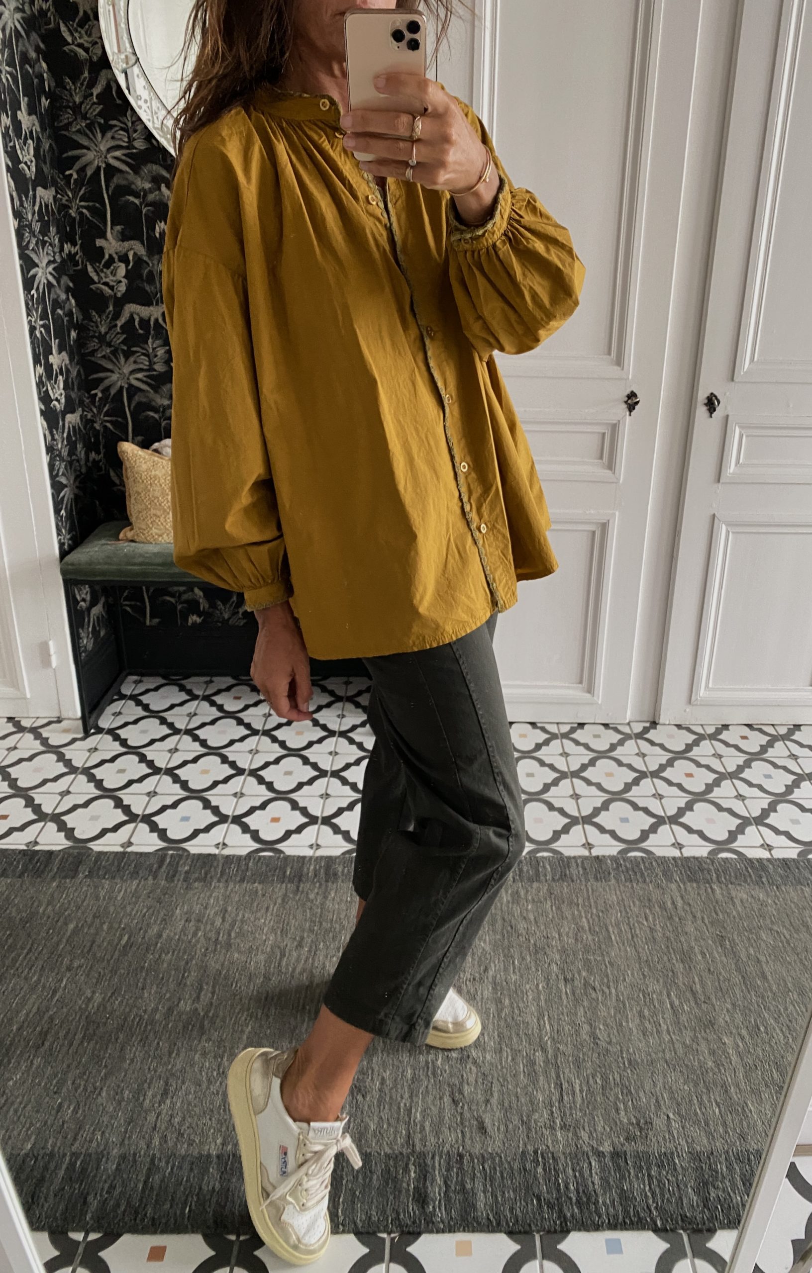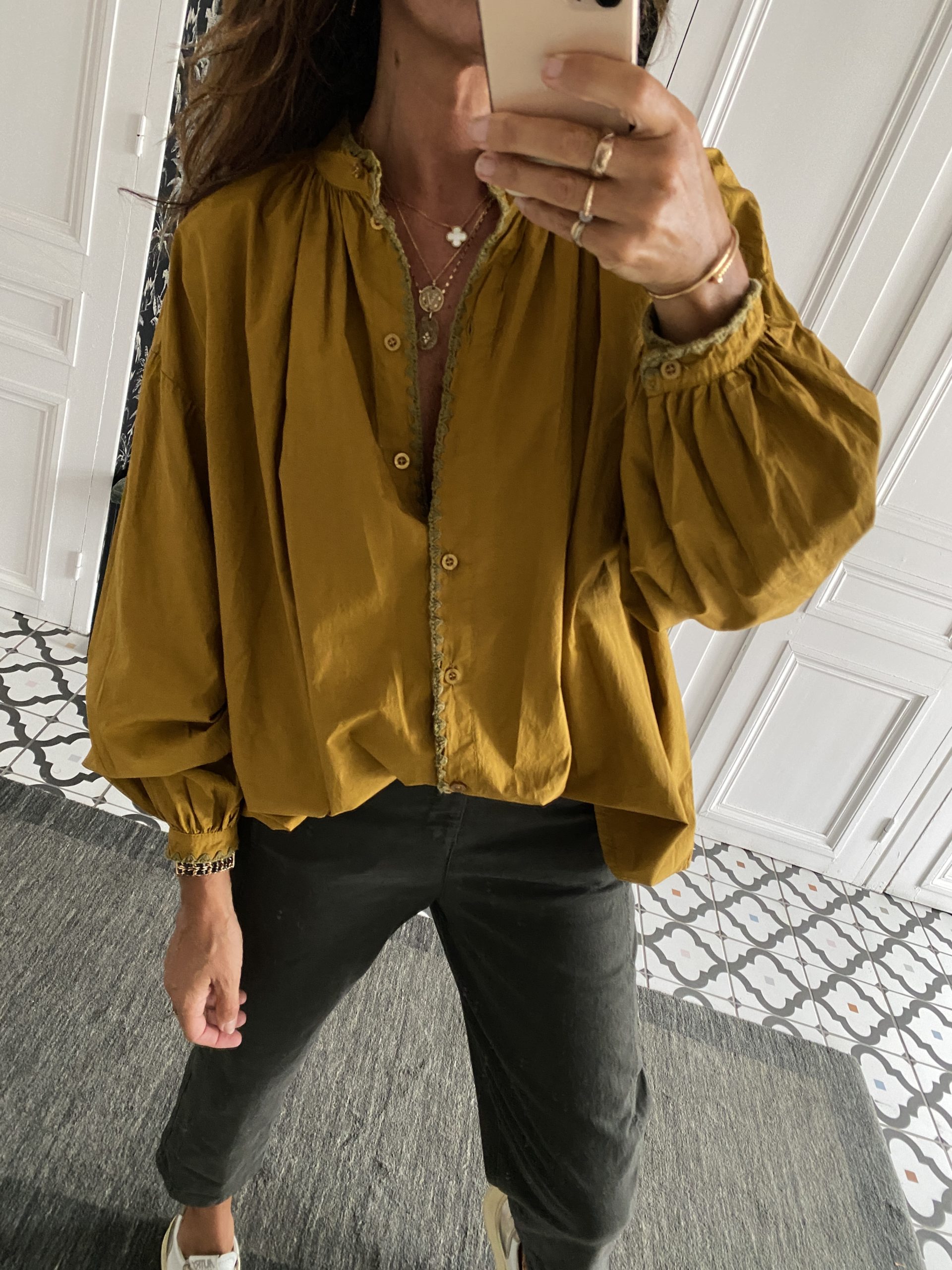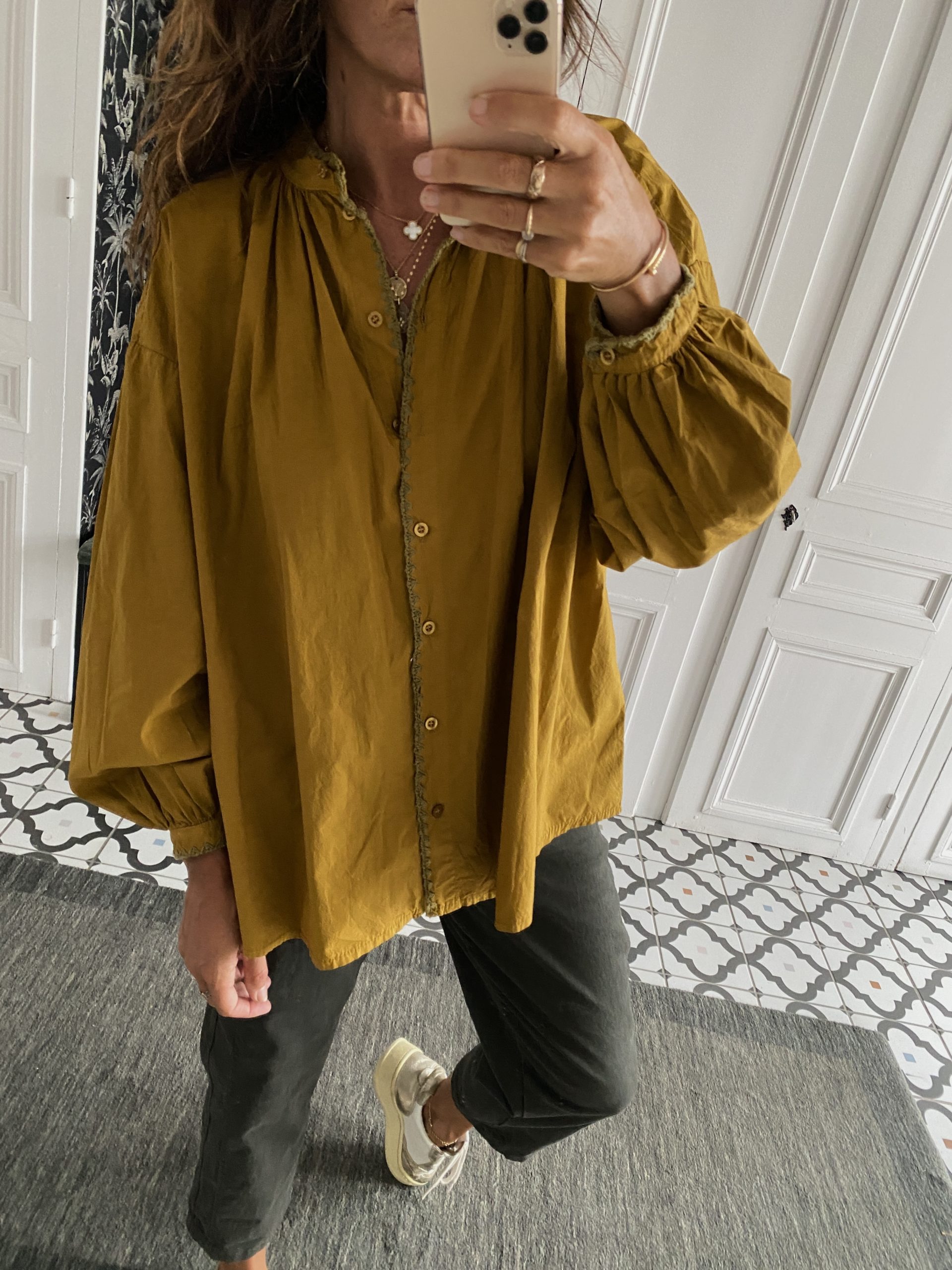 Chemise Johanna coton oversize moutarde col surpiqué kaki