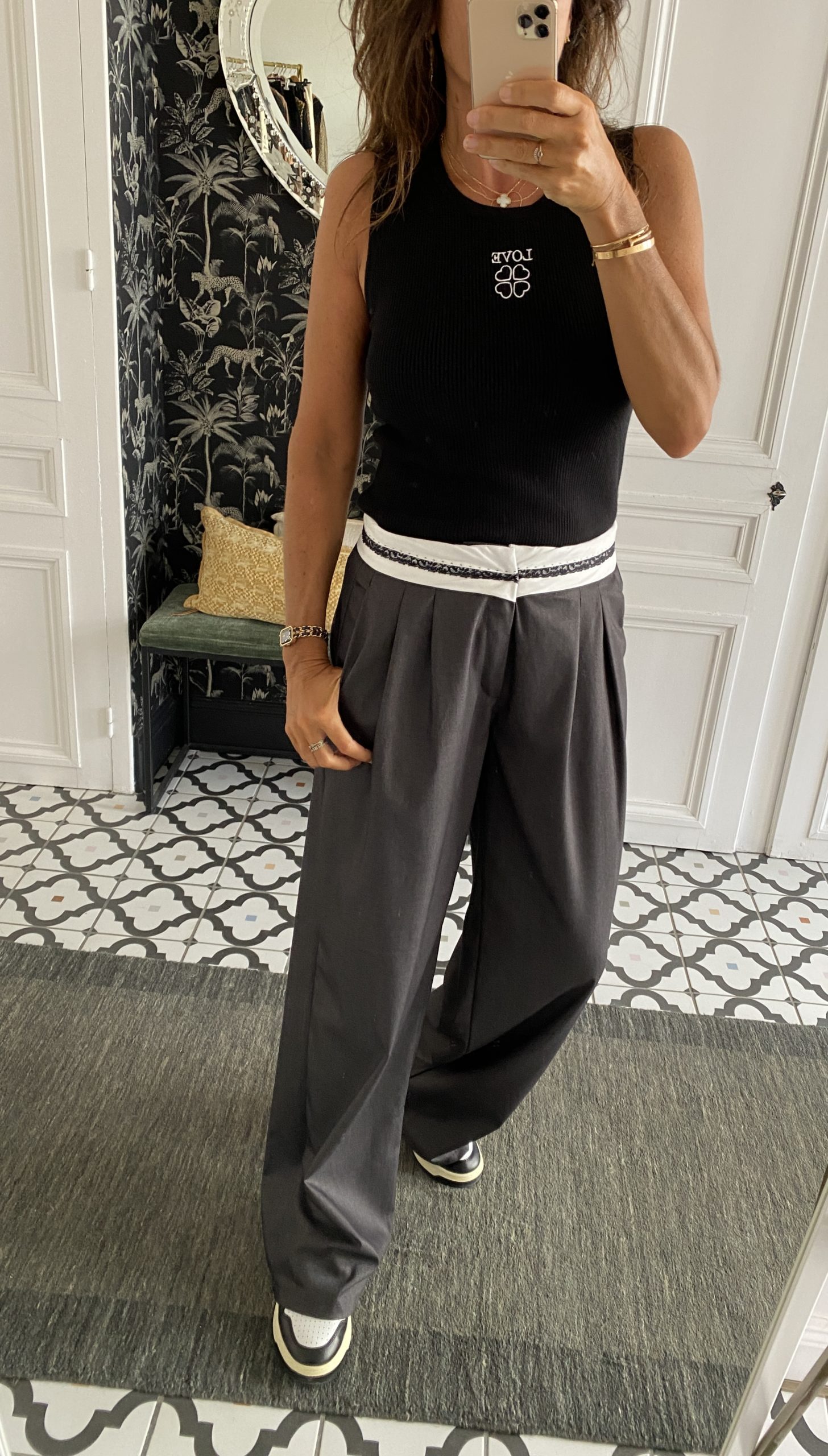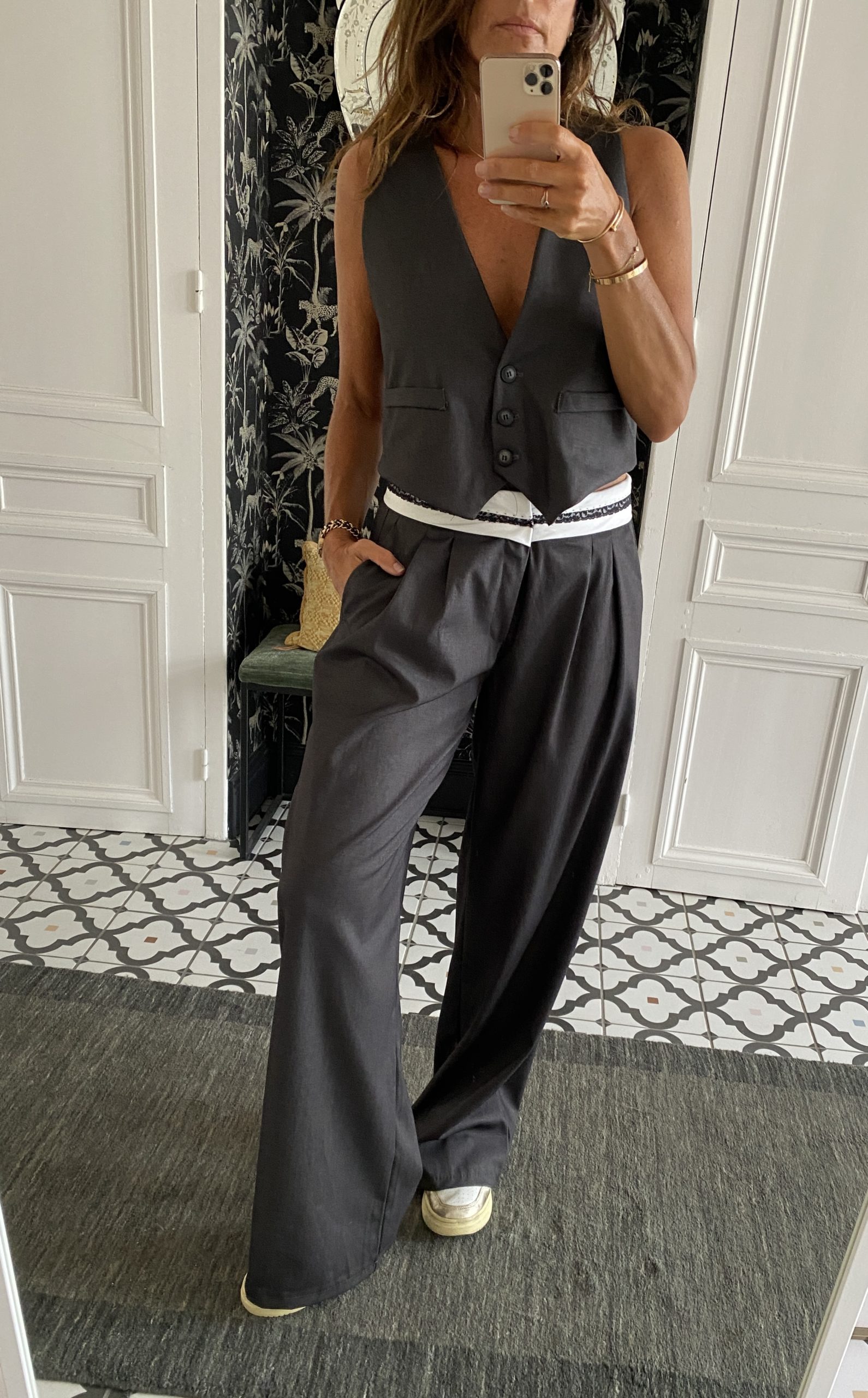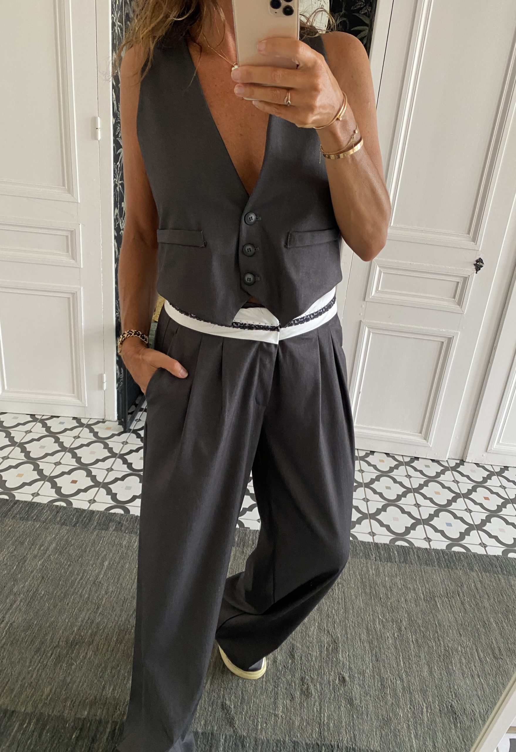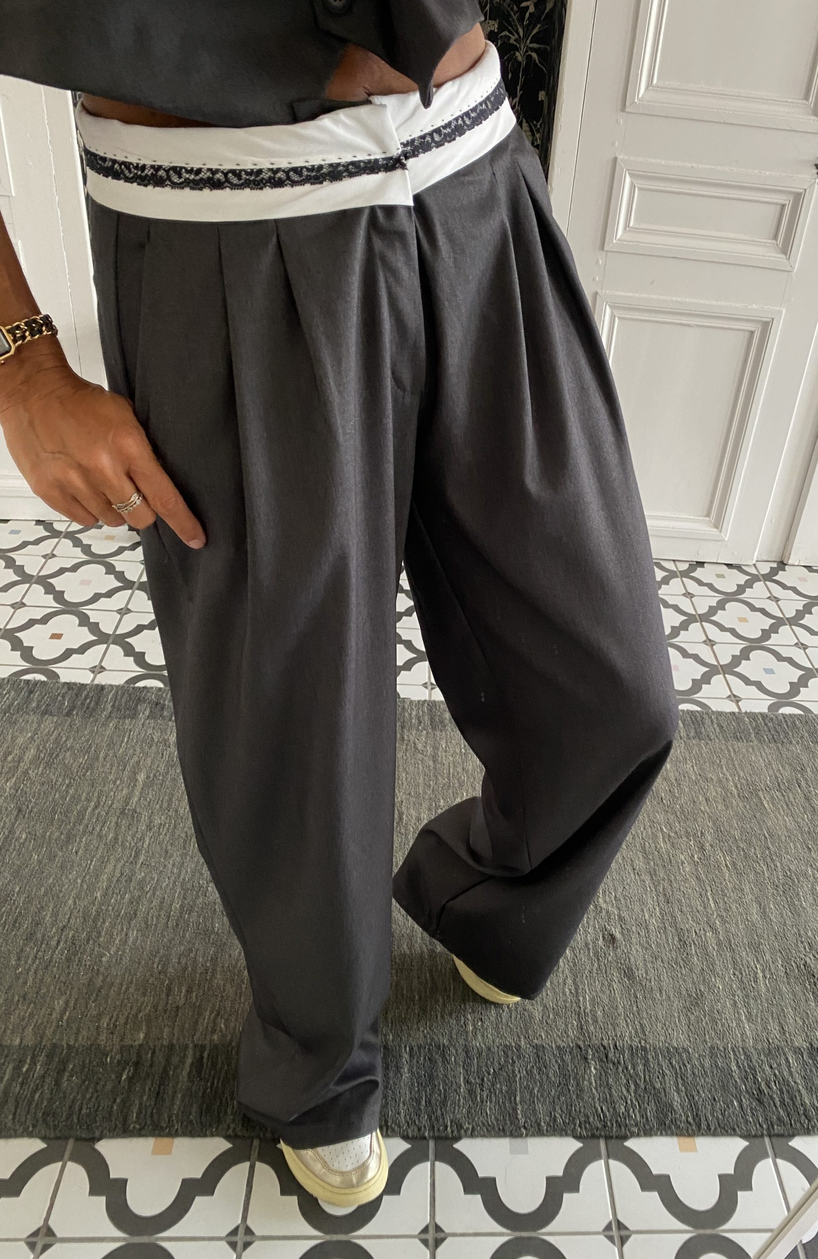 Pantalon costume gris foncé revers dentelles