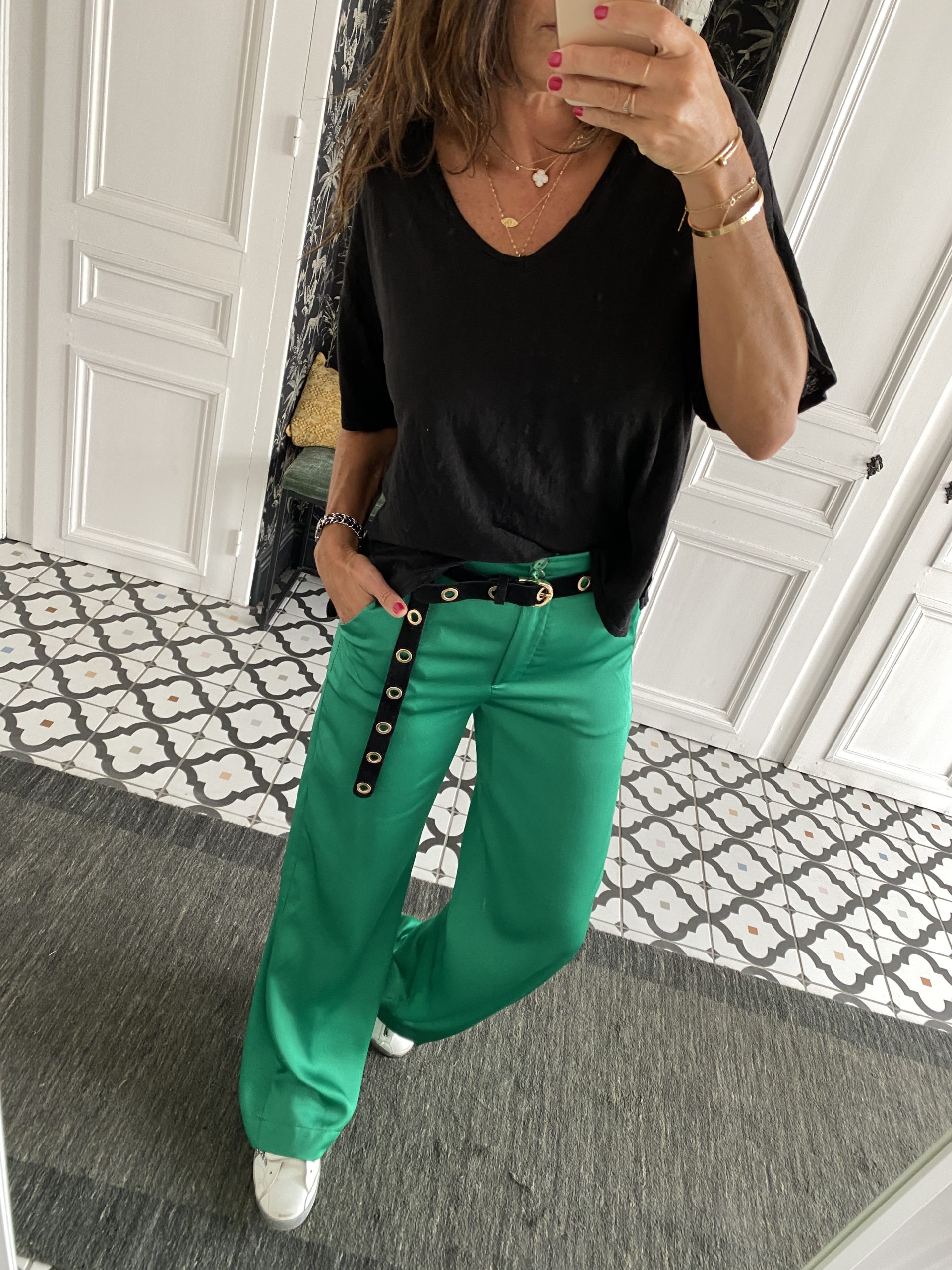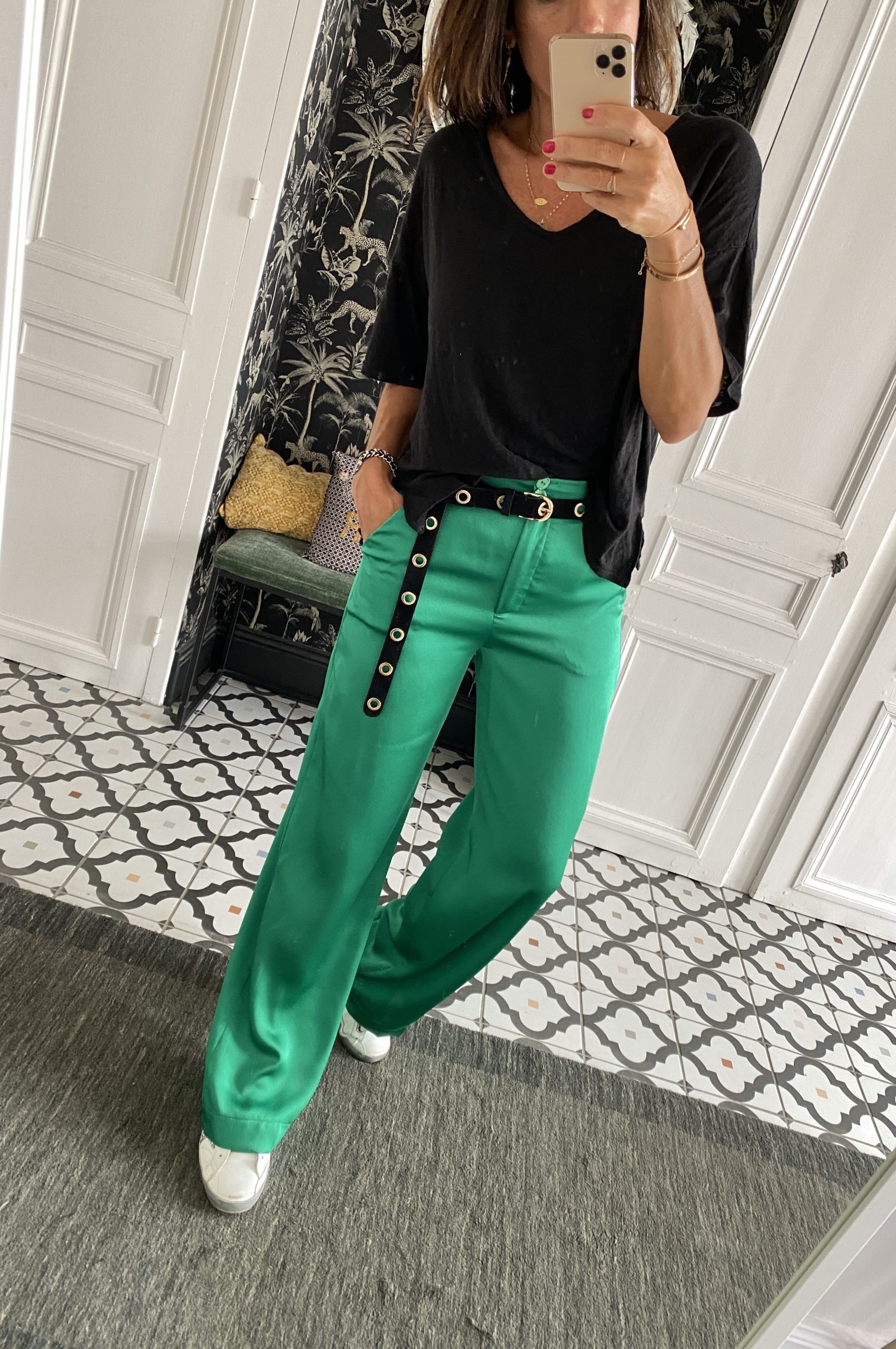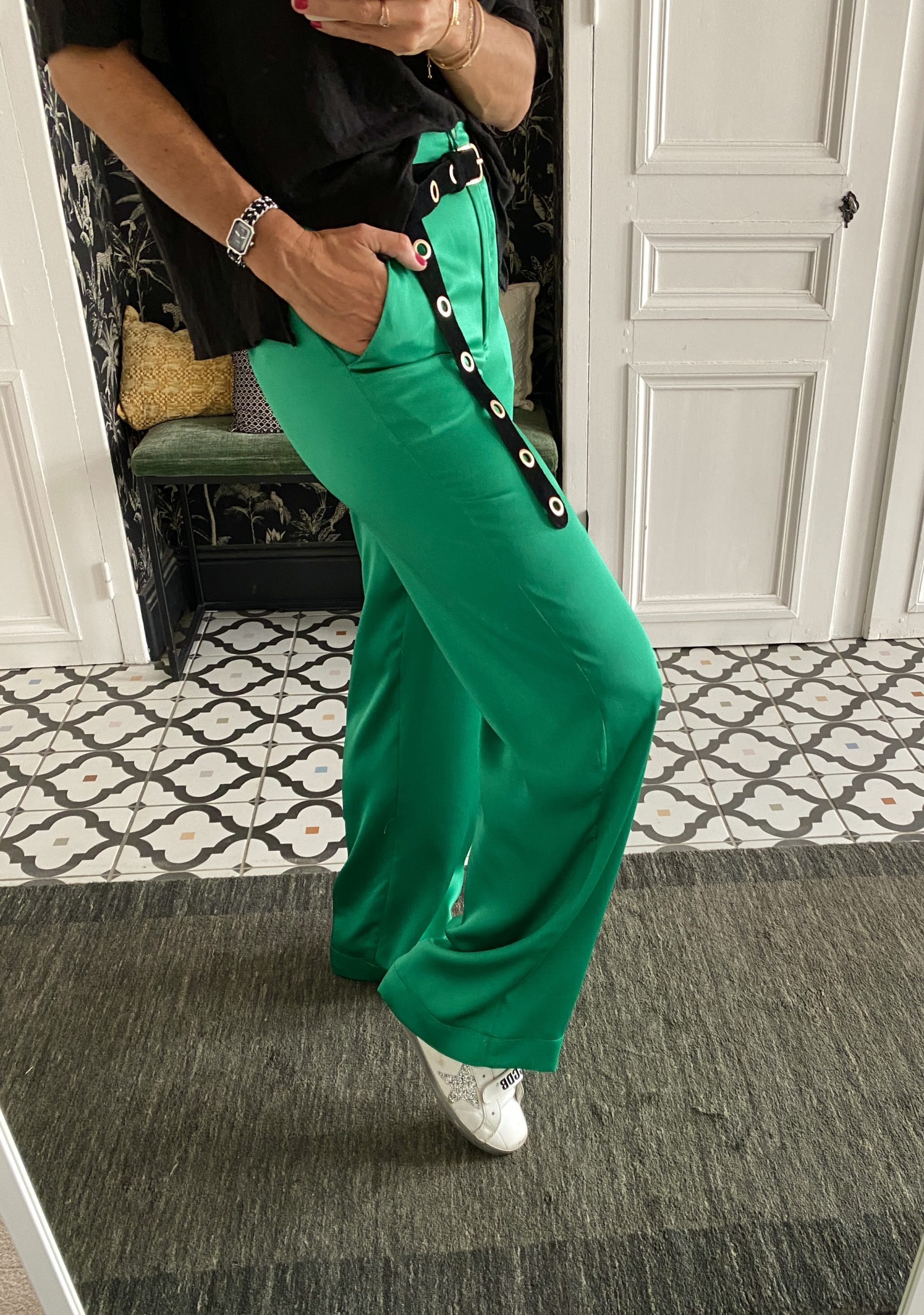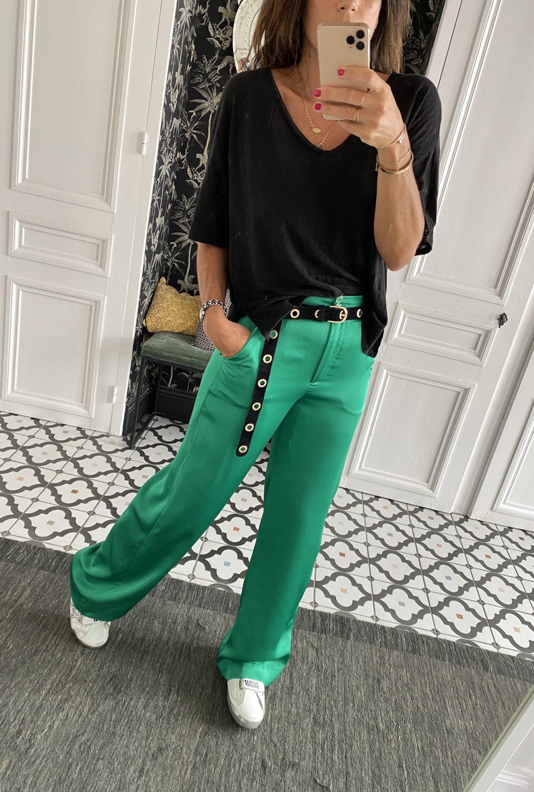 Pantalon Rue des Abbesses Marle satin vert