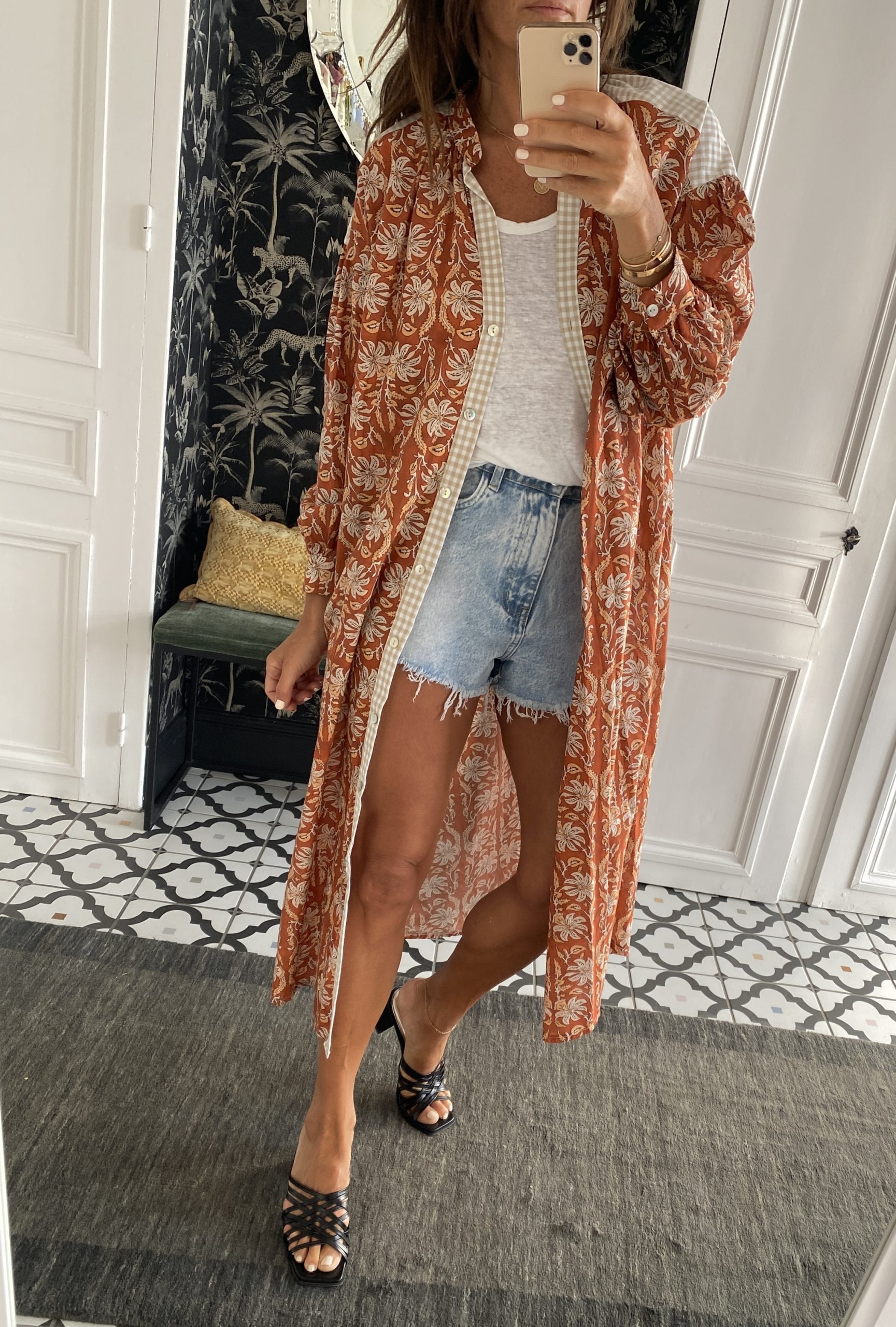 A porter également ouverte sur un pantalon ou un short en jeans