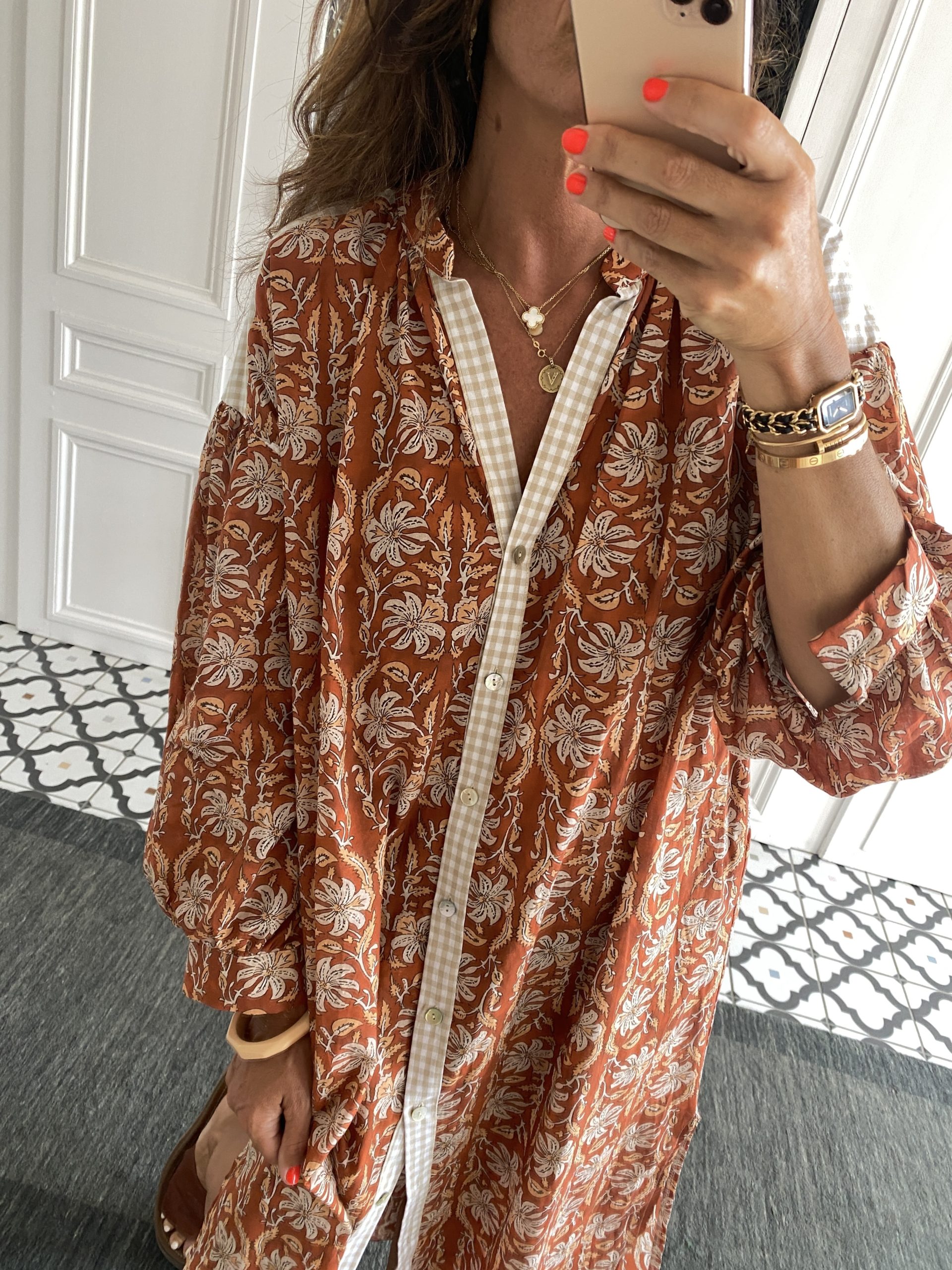 Robe chemise Johanna voile coton terracotta